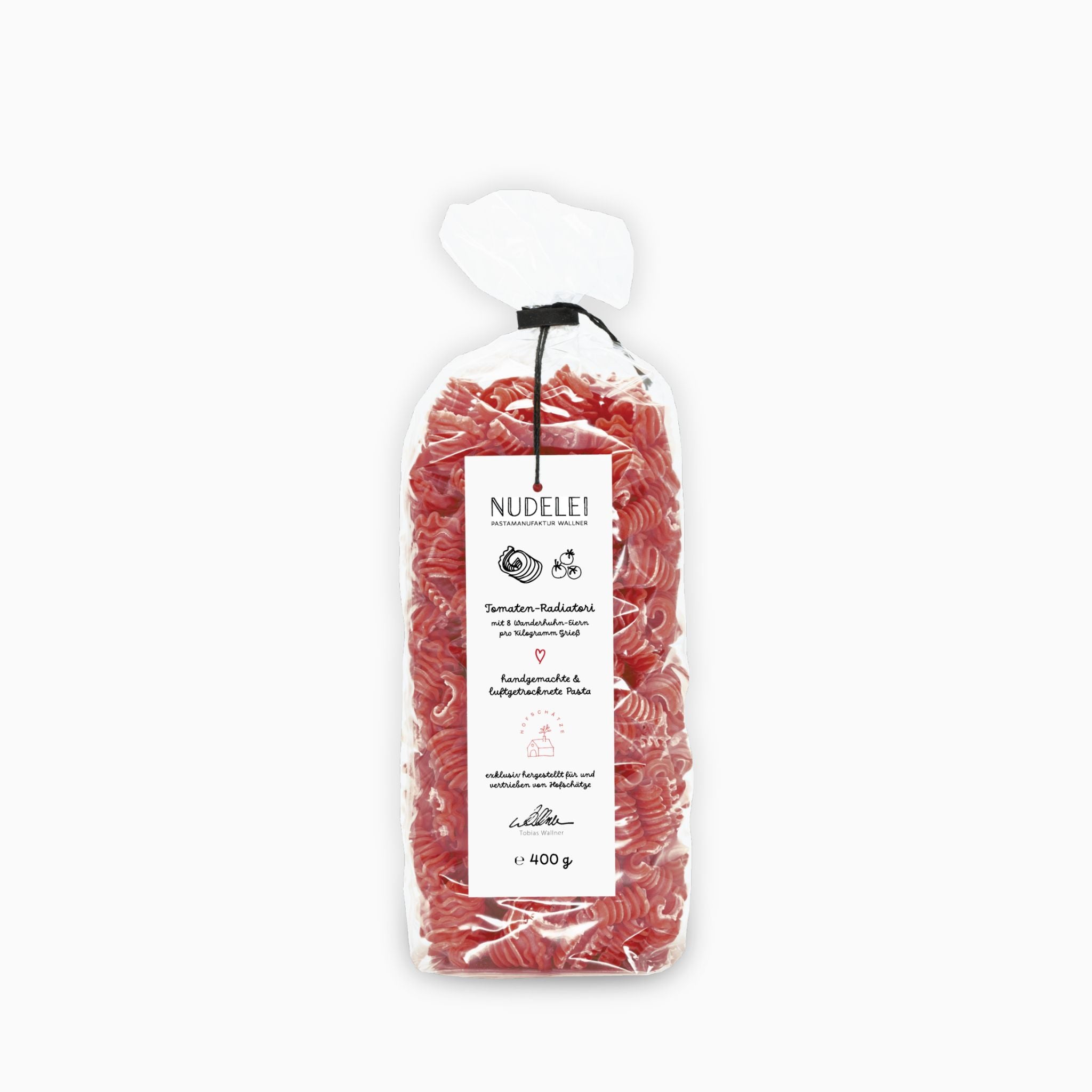 Handgemachte, luftgetrocknete Pasta mit 8 Eiern pro Kilogramm Grieß aus mobiler Freilandhaltung in Österreich.